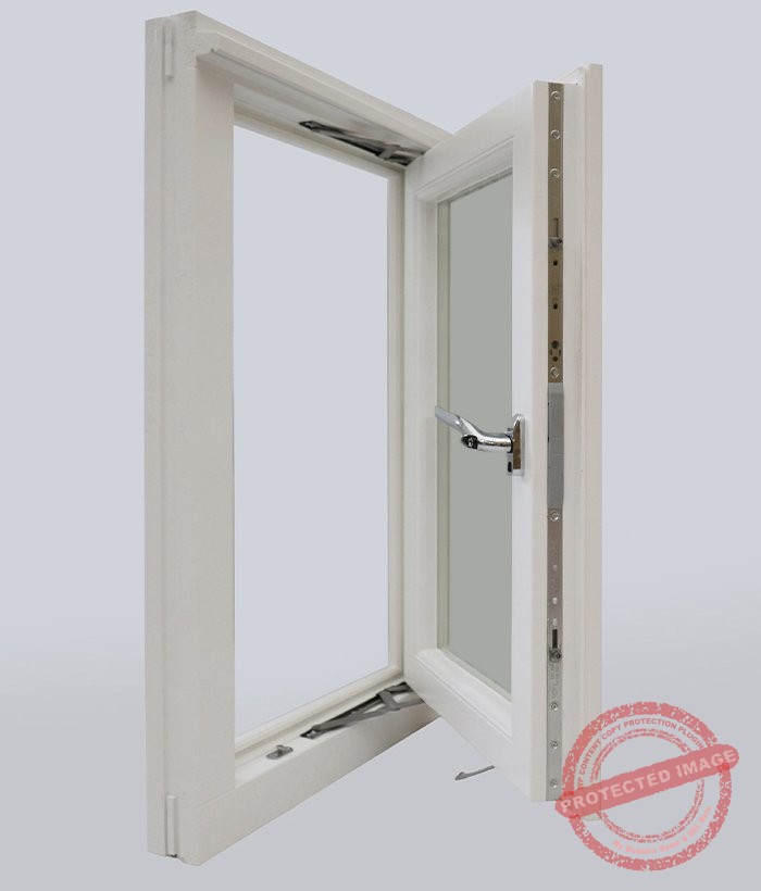 Stormproof casement windows are also known as lipped casements, as the lip prevents the window from going further into the frame as with a flush one. Stormproof casement windows replicate the style of one of Britain’s most common designs of casement windows but are known for their weather protection against the extreme elements which we often face over here. These wooden casement windows are outward opening with the sash overlapping the frame. This simple yet effective design adds extra protection against unpredictable and wetter weather conditions, hence the name ‘stormproof’. The ‘easy-clean’ hinges allow the sash to open to a 90° angle, but also with a sliding function so that easy cleaning of the outer pane is possible. Additionally, this type of window may be equipped with fire escape hinges in order to be utilised as an emergency exit.